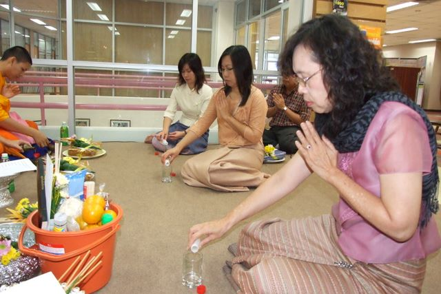 Medical Library, CMU cerebrates New Year Day by make merit in Buddhismin the morning along with small party among library’personnels inthe affternoon .