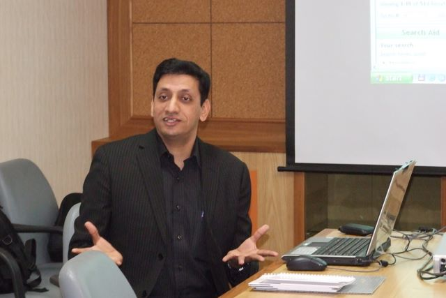 Paula Westgate and Arun Venugopal, Wolters Kluwer Sales Directorpresent the new technology of Ovid database searching.
