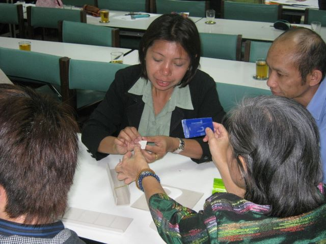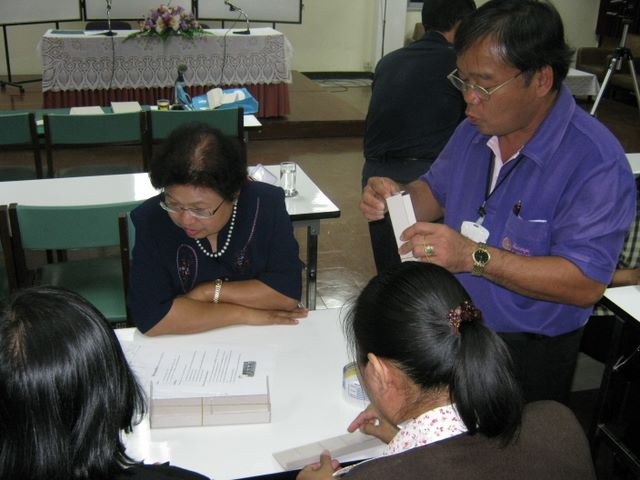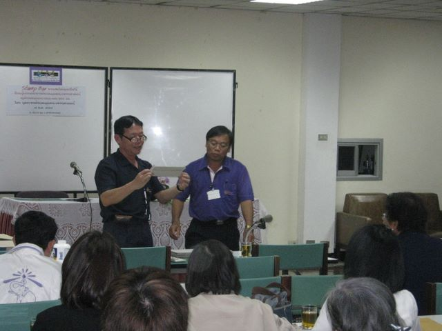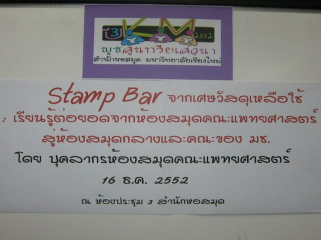 Mr.Kate T. and Mr.Kanongdej S., Stamp bar creaters showed how it done onKM activity at Center Library, CMU.