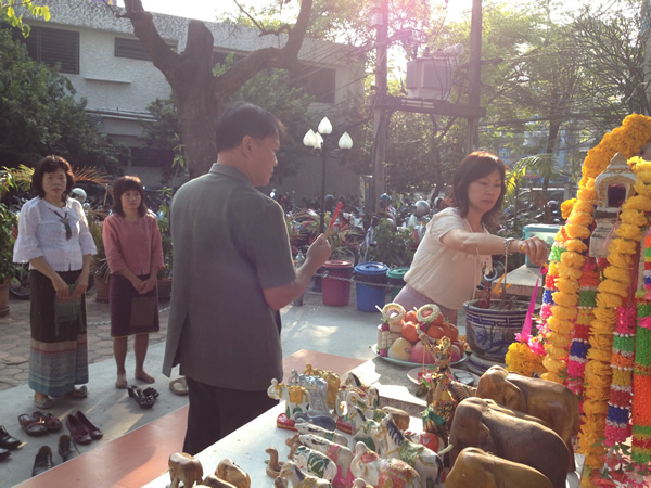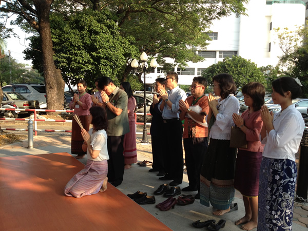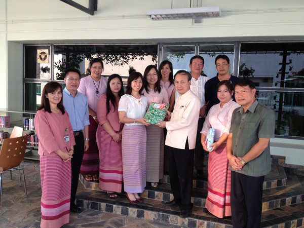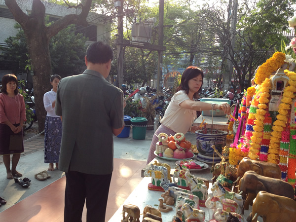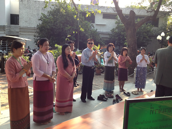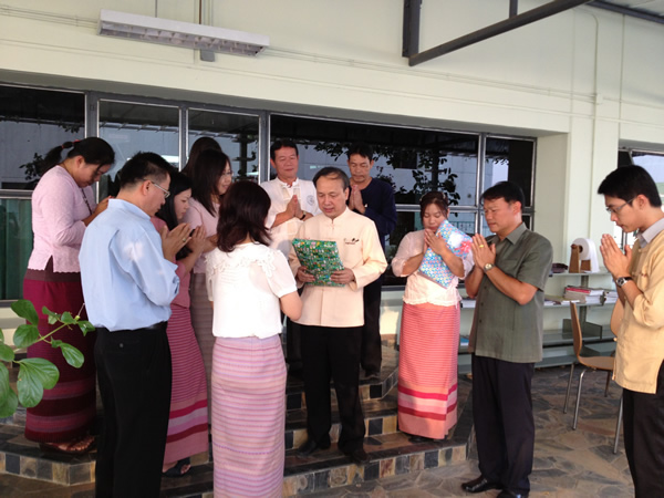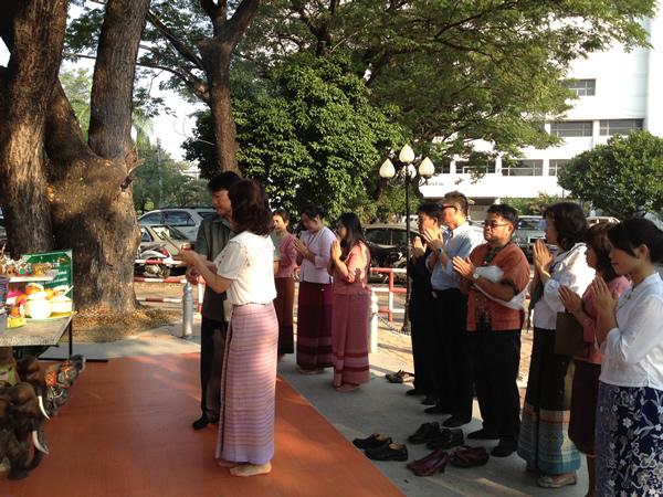 The Library began the New Year 2013, The Head together with library staffhave done merit by offering fruits and flowers to Phra Phum at the Spirit Houseof Faculty of Medicine, offering food and essentials to a monk at Wat Pan Saoand the Ex-Associate Dean and a Deputy Director of Main Library came togive the new year greetings.