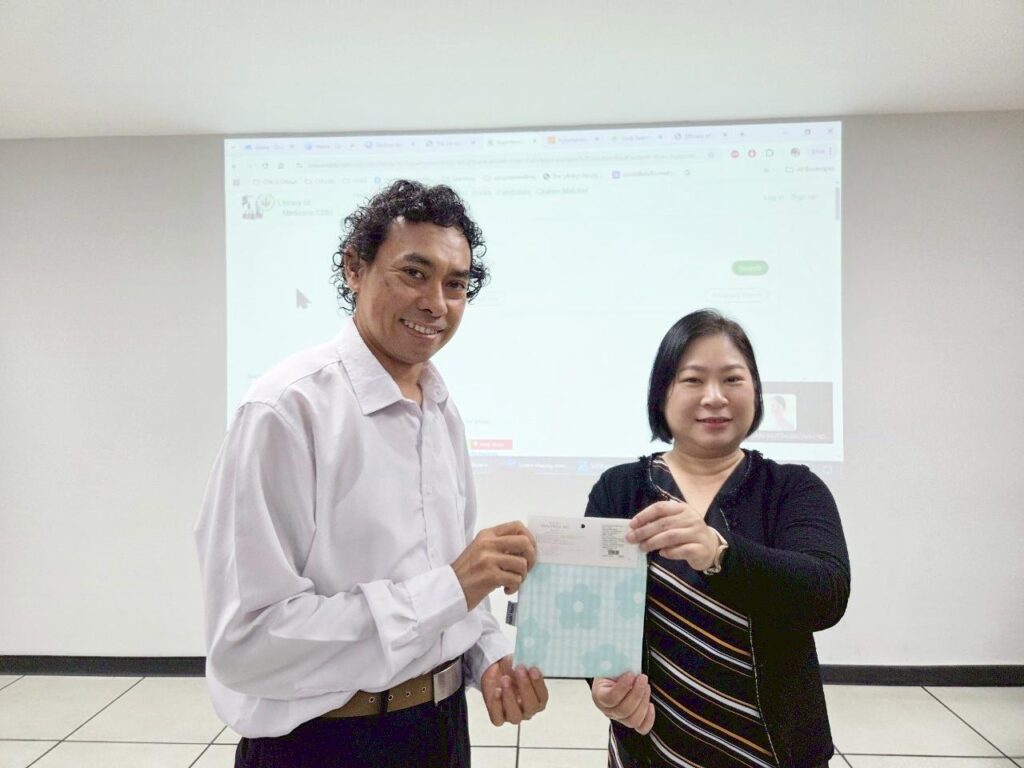 หัวหน้างาน เป็นวิทยากรบรรยาย เรื่อง การสืบค้นสารสนเทศ สำหรับนักศึกษาหลักสูตรระดับบัณฑิตศึกษา (หลักสูตรนานาชาติ) คณะพยาบาลศาสตร์